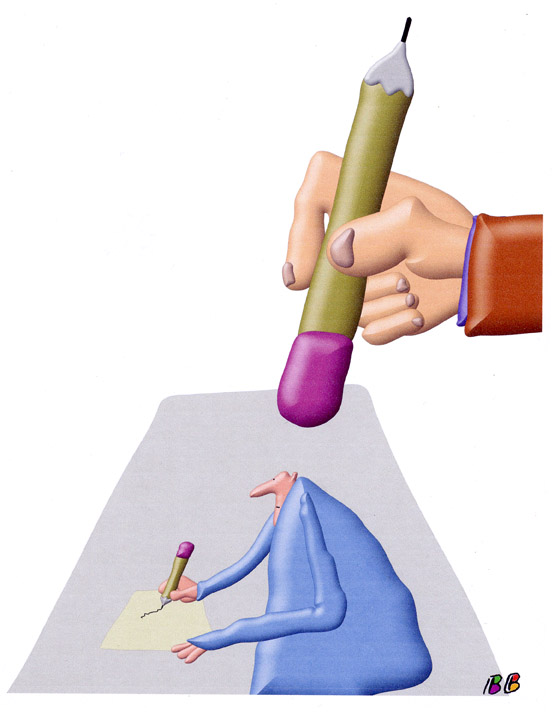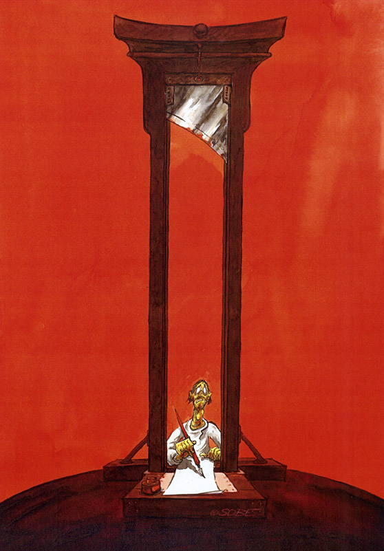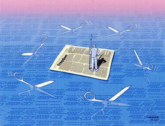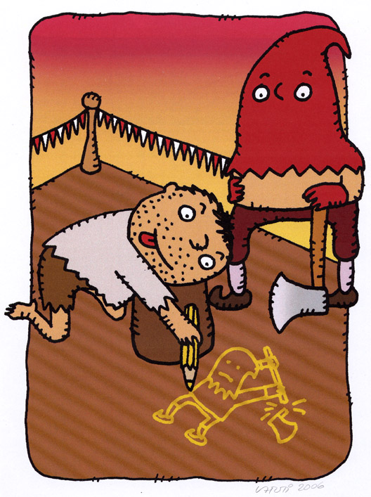 The theme of the 6th International Editorial Cartoon Competition, was “Cartooning in a dangerous environment”: to illustrate the pressure under which cartoonists perform their craft: the “chill” of a potential libel suit, the temptation of self-censorship, and security, political, economic and/or editorial constraints to artistic expression."