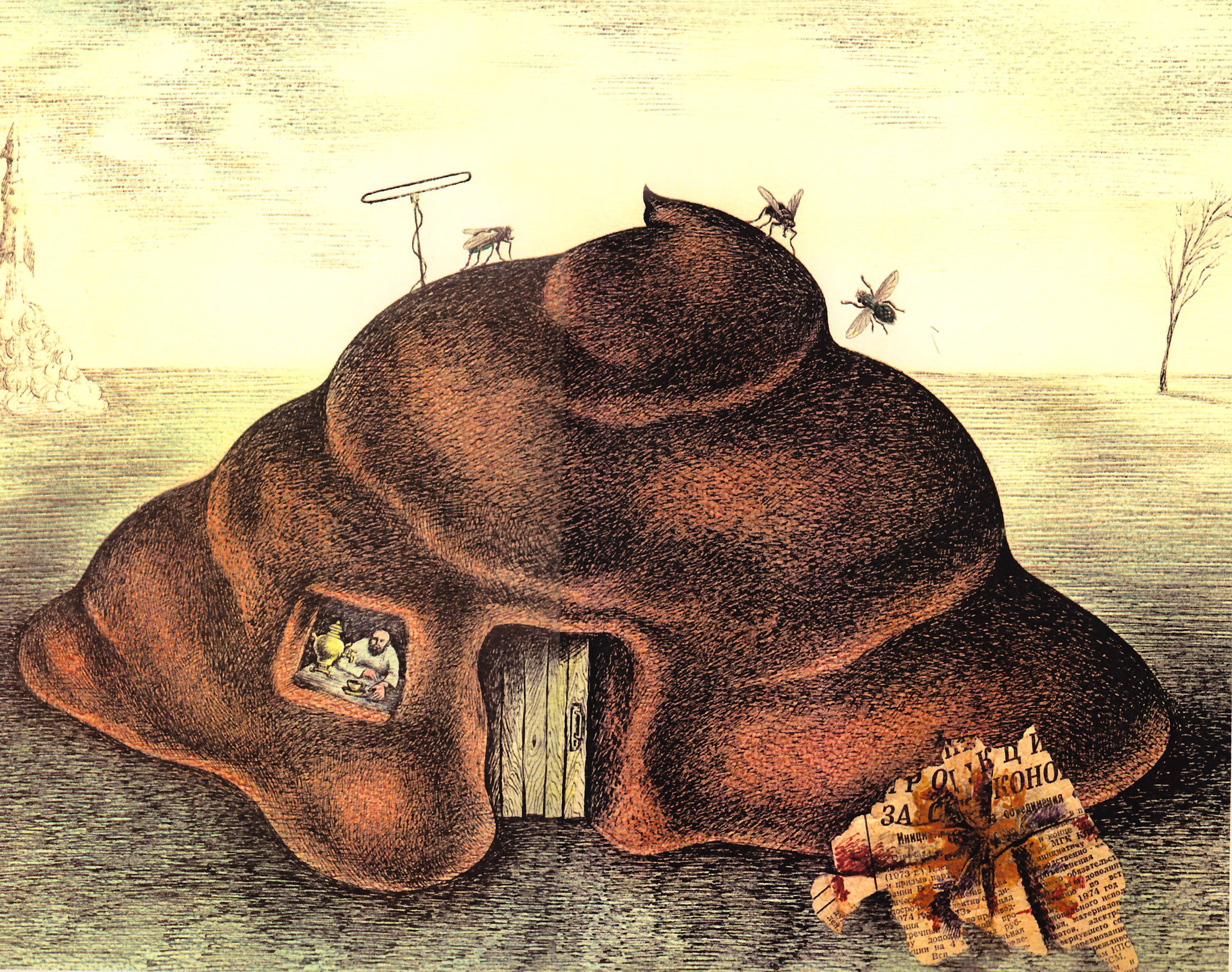 Иванов и был таким концептуалистом - в его наследии нет привычных натюрмортов, портретов, пейзажей, жанровых картинок. Осталось не так много произведений за его подписью, но каждая работа - квинтэссенция мысли. Читателям «ЛГ» семидесятых он известен как автор сотен черно-белых совсем не смешных рисунков, а грустных, умных и всегда парадоксальных.