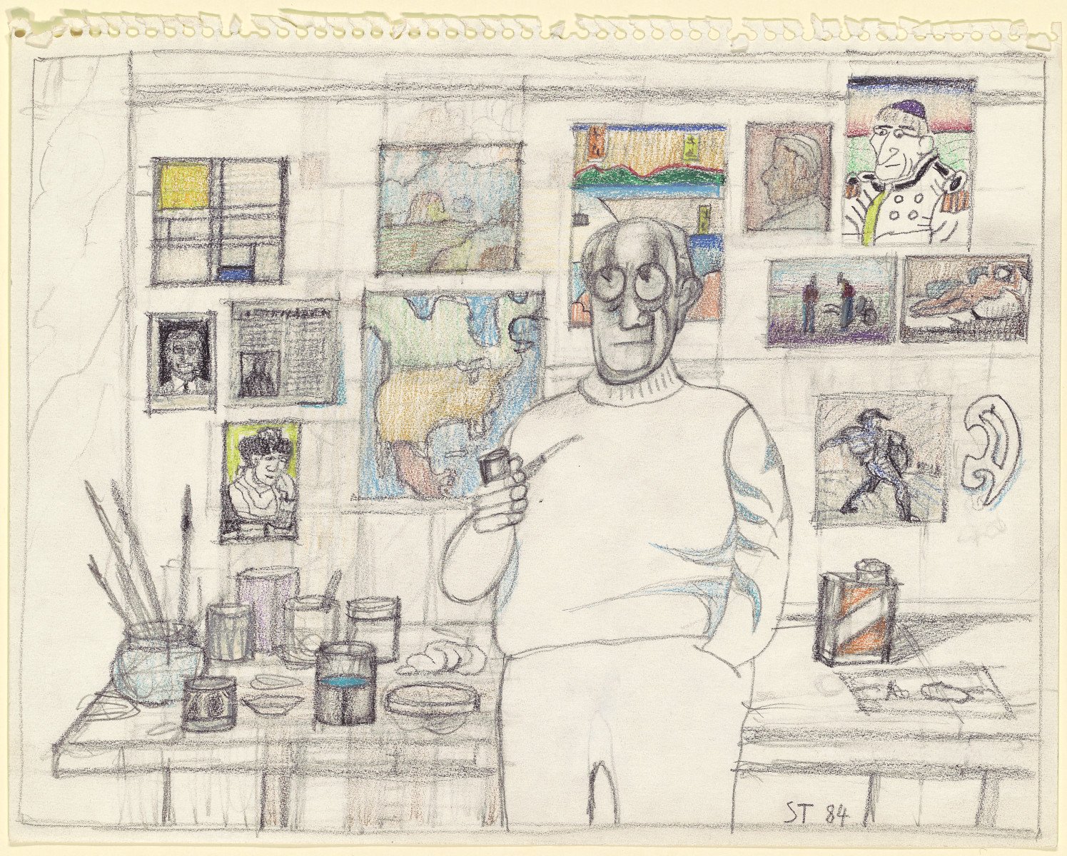 Saul Steinberg, Self-Portrait, 1984, graphite and colored pencil, National Gallery of Art, Washington, Gift of The Saul Steinberg Foundation.
