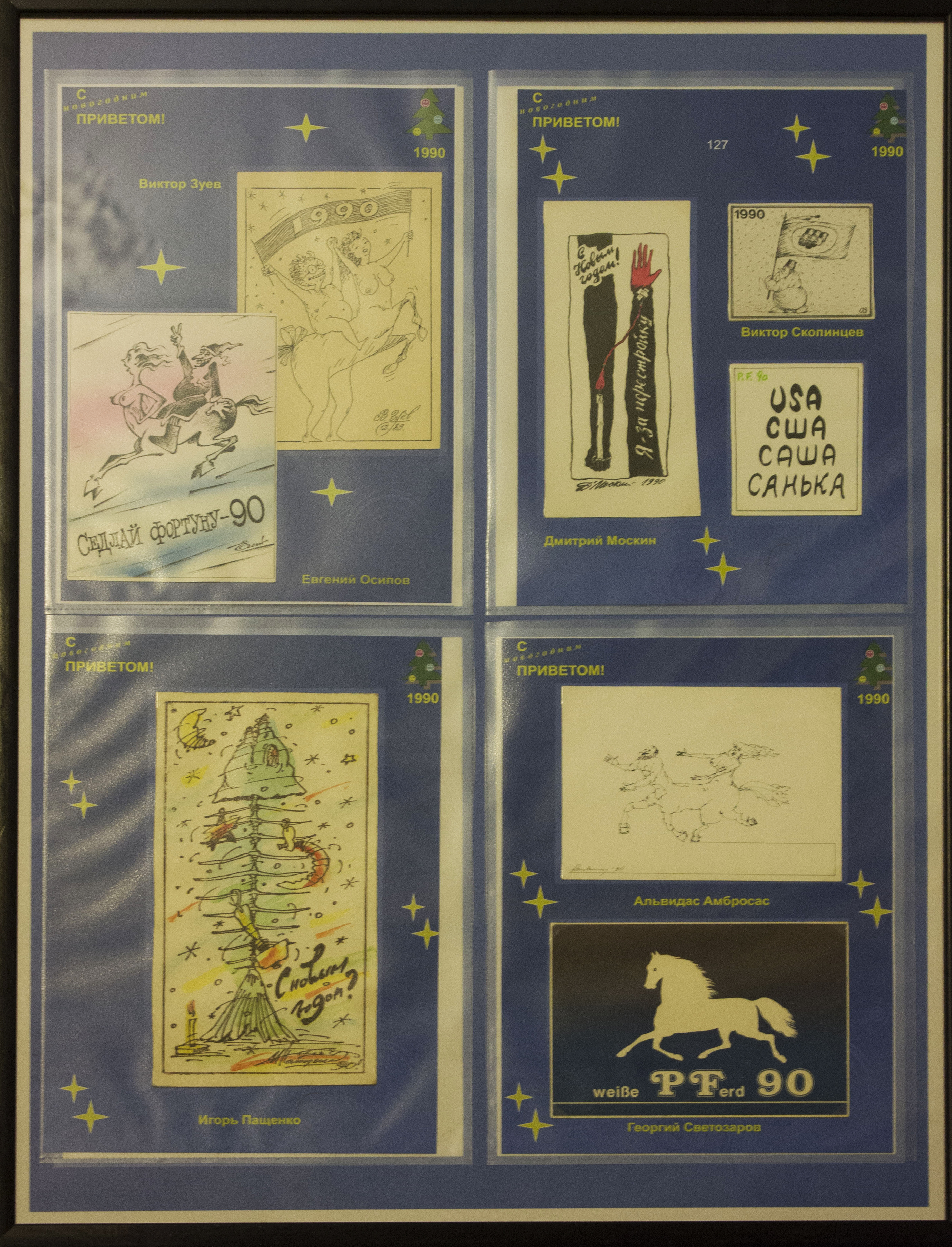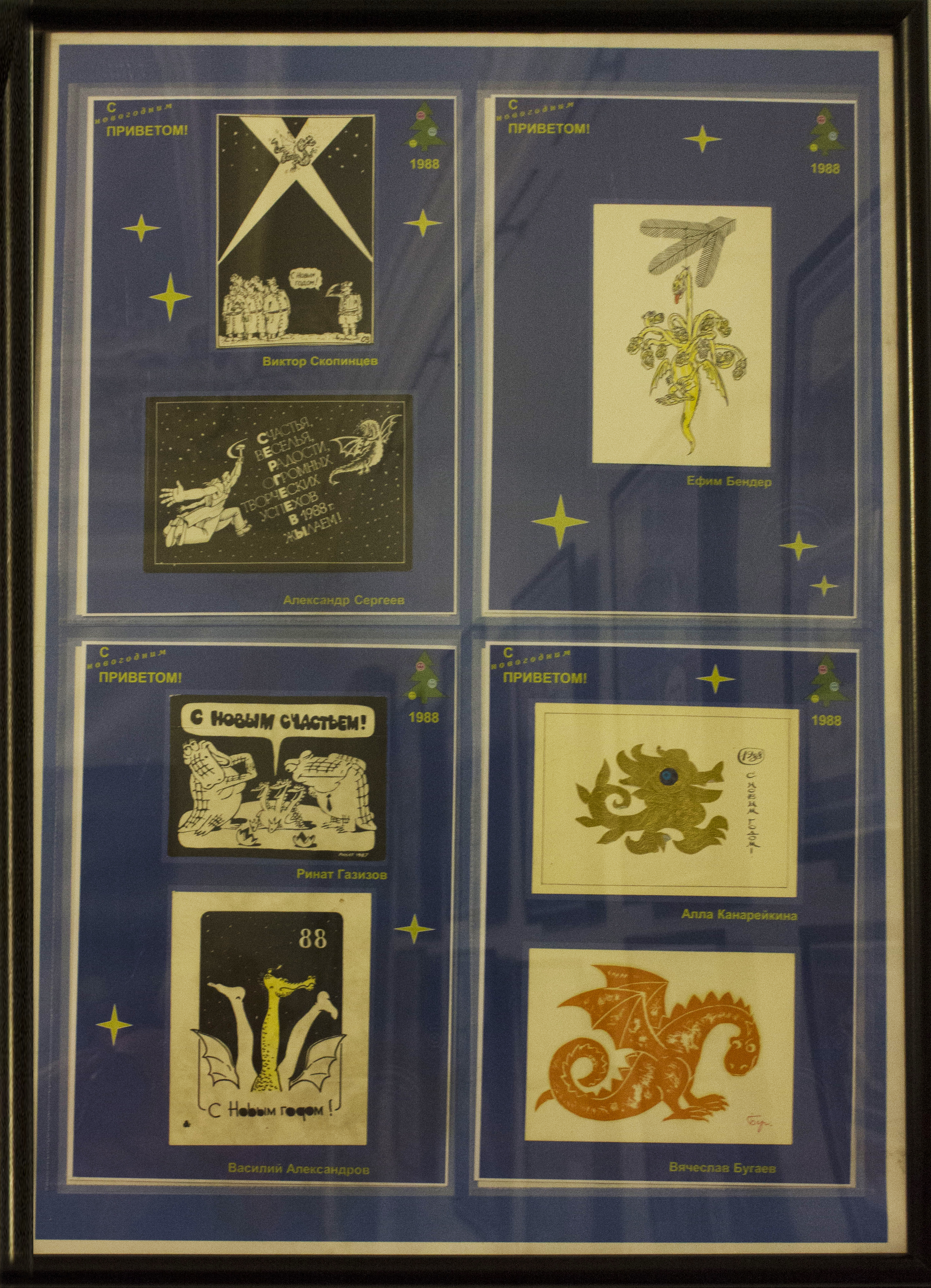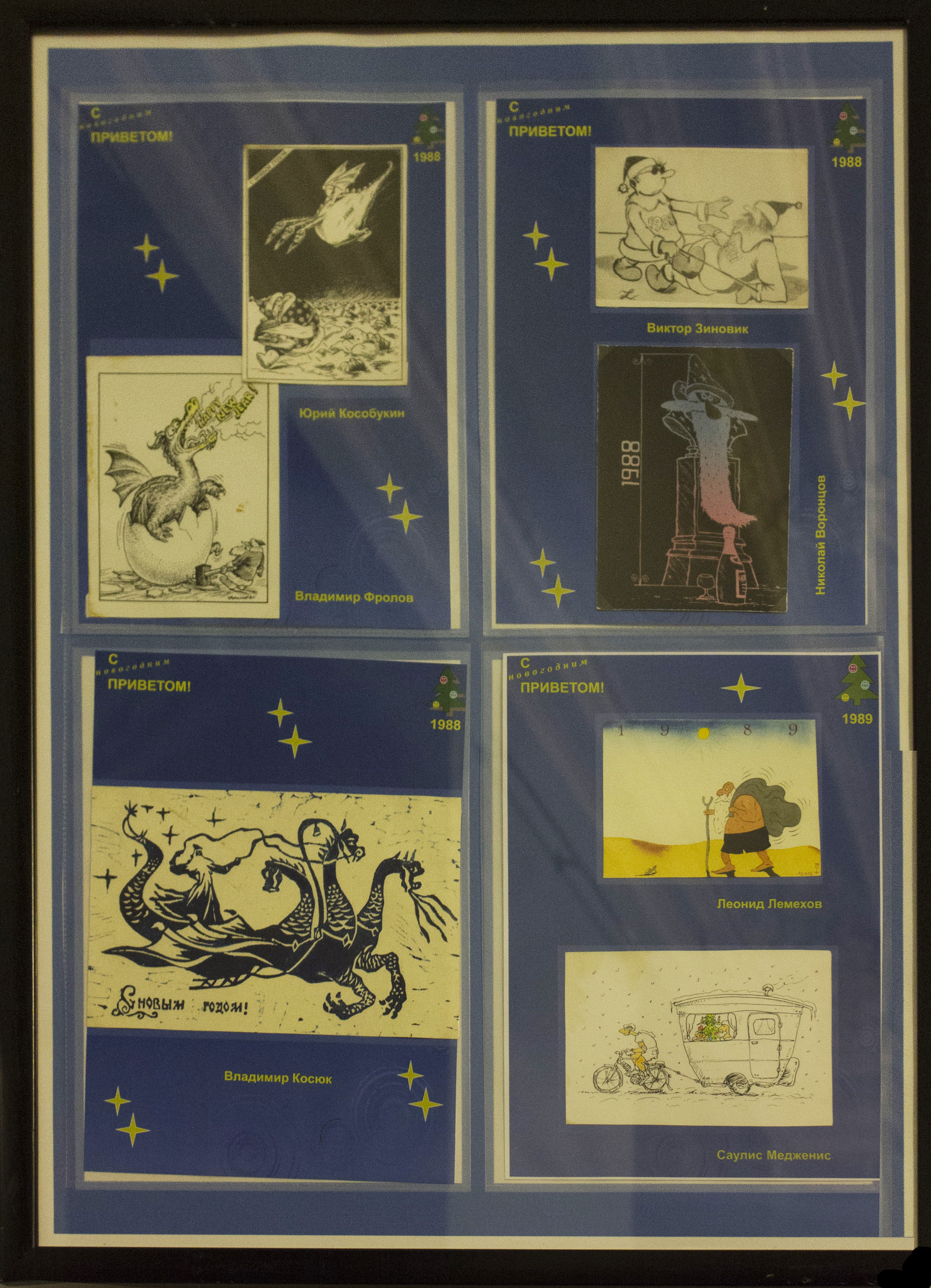 Скачущий с пустым мешком Дед Мороз (в правом нижнем углу) - произведение Александра Митника.